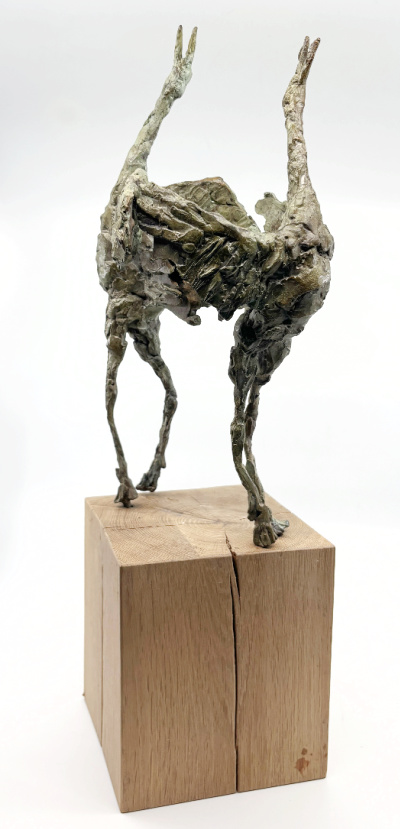 Arno Goossens (1960) laat zich als beeldhouwer en bioloog vooral inspireren door het leven. Hij werkt naar realistische beelden, waarin dansende vrouwen en krachtige stieren vaak het thema vormen. Een flamencodans of een modern ballet. Een schotse hooglander op de hei of een Spaanse stier in de Camargue. Deze herinneringen aan een ontmoeting probeert hij in zijn beelden vast te leggen. Het is niet zijn bedoeling om de uiterlijke vorm na te bootsen maar om de lichaamstaal te vertellen. Ondanks de realistische wijze van werken maakt Arno zijn beelden vaak anoniem door hoofd en andere lichaamsdelen weg te laten. Daardoor krijgen de houding en beweging van het beeld meer de nadruk.