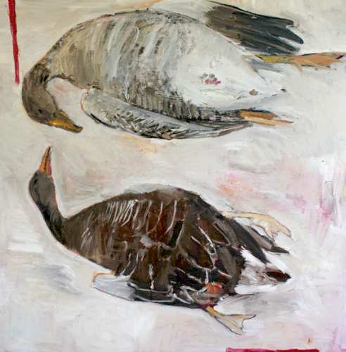 Daarnaast zijn schilderijen van fazanten en ganzen te zien.