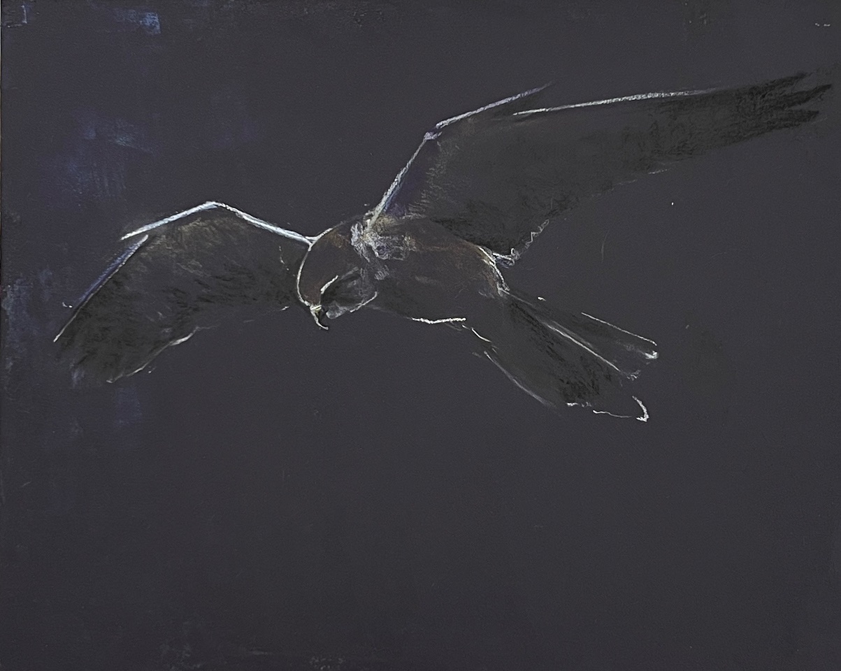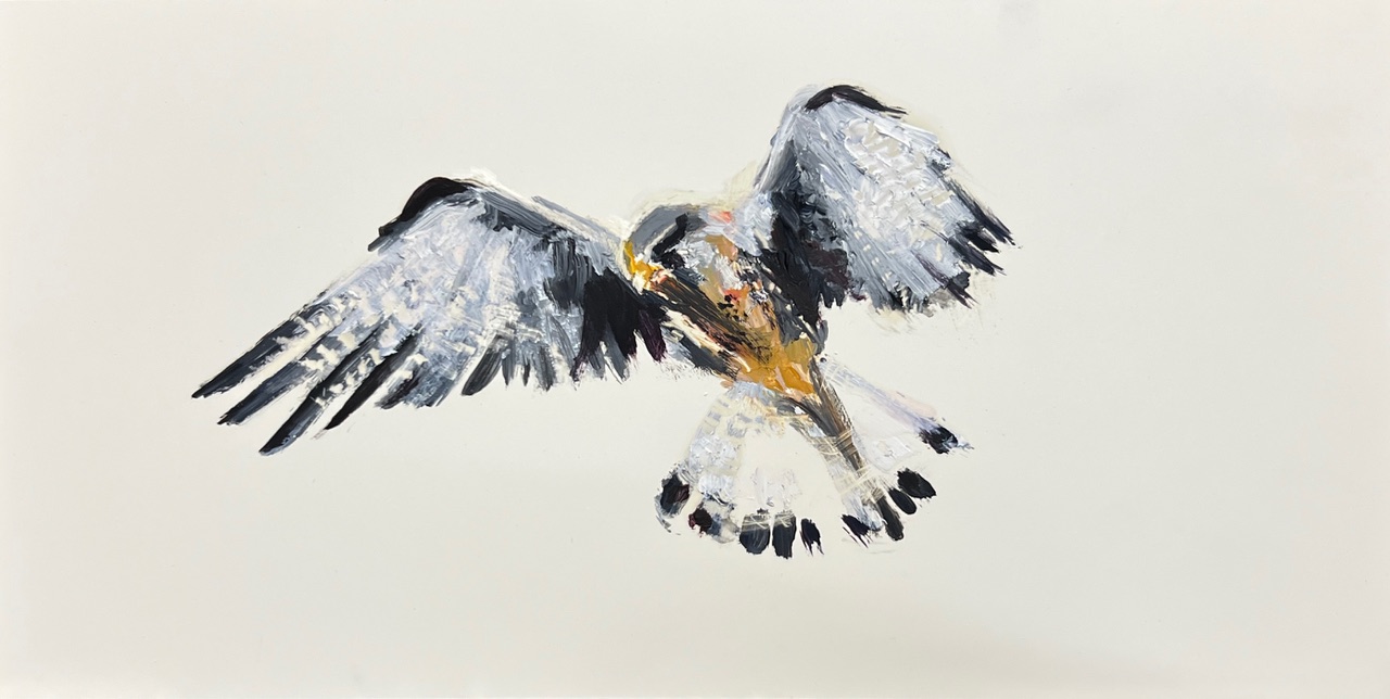 Laura Hoek is een kunstenaar die graag projectmatig werkt. Dat maakt het enerzijds mogelijk de omstandigheden ter plaatse erbij te betrekken, anderzijds dwingt die werkwijze haar stappen te zetten en nieuwe dingen uit te proberen. Voor deze tentoonstelling op Texel betekent dat bijvoorbeeld dat ze menselijke figuren en lammeren op een natuurlijke manier met elkaar probeert te combineren. Letterlijk, maar ook symbolisch, refererend bijvoorbeeld aan de kunstgeschiedenis. Die gelaagdheid probeert ze ook formeel te vertalen in een donkere achtergrond, een mannen- of vrouwenfiguur dat zich op het eerste plan beweegt en een lam dat transparant, als een derde laag, daar overheen wordt gelegd.