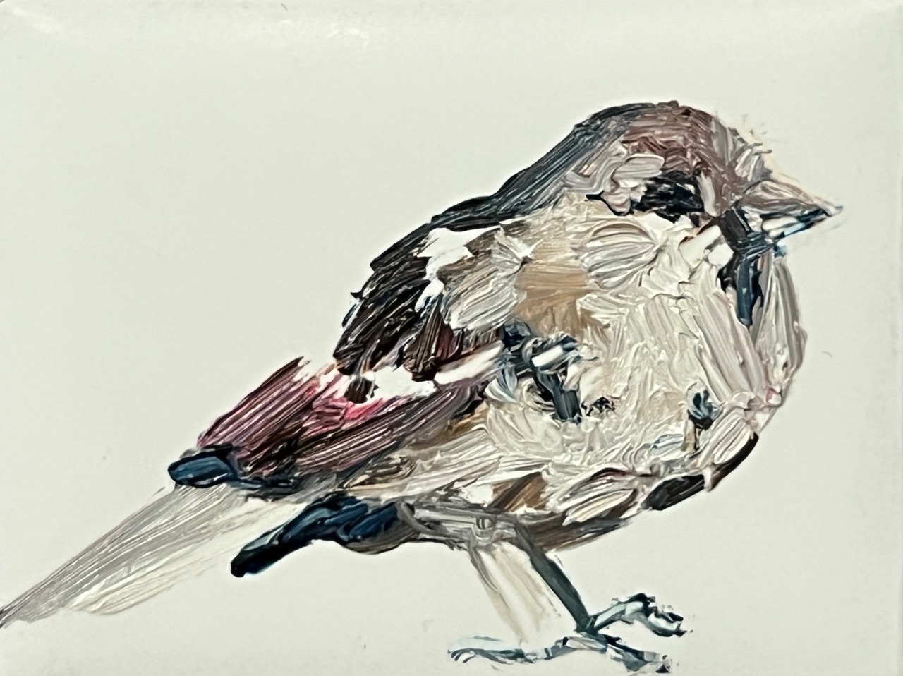Door een project dat ze vorig jaar heeft gedaan, heeft ze ontdekt dat het een uitdaging is om op een gedrukte ondergrond te werken. Ze heeft toen een aantal tekeningen gemaakt op een print van een Chesterfield bank. Op die manier kon ze uitbundig experimenteren met voor- en achtergronden, met transparantie en juist het omgekeerde ervan, met degelijkheid en burgerlijkheid als tegenpool van sensualiteit en vrijheid. In haar nieuwe werk zijn het soms reproducties van klassieke kunstwerken die de basis vormen van een werk. Dan moet ze met haar toevoegingen, getekend of geschilderd, een strijd aangaan met een dominant, gekend en gerespecteerd beeld. Dan staat het refereren aan de historie gelijk aan het letterlijk in huis halen daarvan.