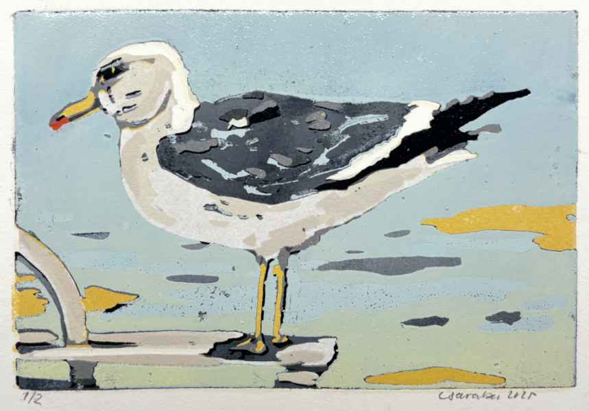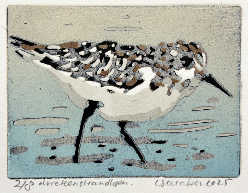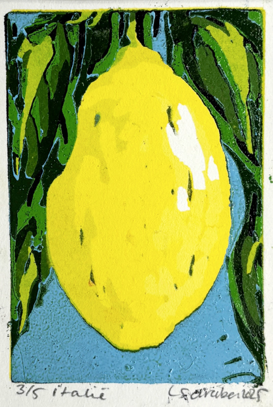 Alleen bij haar schetsen wisselt het tekenen en het schilderen elkaar af. Als ik er mijn verbazing over uitspreek dat ze niet schildert, maar bij haar linoleumsneden wel de indruk weet te wekken dat ze geschilderd zijn, ziet ze dat als een bevestiging van haar keuze. “Het is toch mooi dat je met zo’n medium dat effect kunt bereiken. Bovendien, ik heb een soort angst voor het witte linnen. Misschien komt het nog wel, maar voorlopig voel ik me vertrouwd en prettig met linoleum.”