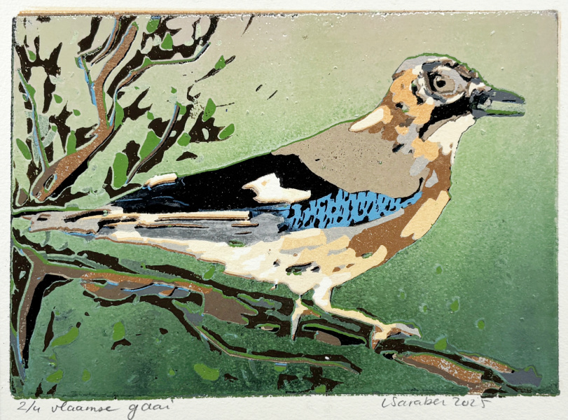 Lenneke Saraber gebruikt een medium dat nagenoeg in onbruik is geraakt. De linoleumsnede. Zelf verklaart ze haar keuze als een medium waarbij er ruimte is voor het toeval, een medium dat uitdaagt omdat het stug is en fouten genadeloos afstraft en een medium dat het mogelijk maakt intensief met ruimtelijkheid en diepte te experimenteren. Bij iedere druklaag snijdt ze iets meer weg, zodat ze laag over laag kan leggen, lagen die ieder voor zich spreken, maar die tevens een conversatie met elkaar aangaan. Soms is een werk uit meer dan vijftien lagen opgebouwd.