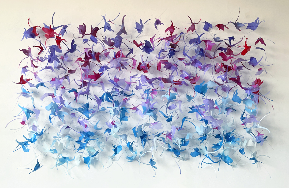 Aan de grotere papierinstallaties ging altijd een intensieve onderzoeksperiode vooraf. Individueel onderzochten ze een gekozen thema en gaven de studies aan elkaar door. Ze vertellen wat we van elkaar nodig hebben en verwachten. In die proefperiode ontstonden verschillende concepten waarvan ze er uiteindelijk één uitwerkten. Er zijn in de loop der jaren installaties gerealiseerd met thema’s als koolzaadbloemen, riddersporen, lathyrus, tulpen en bijen. Vaak nam de uitvoering veel tijd en planning omdat ze secuur en gedetailleerd werkten.