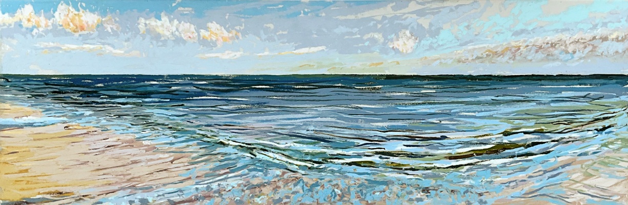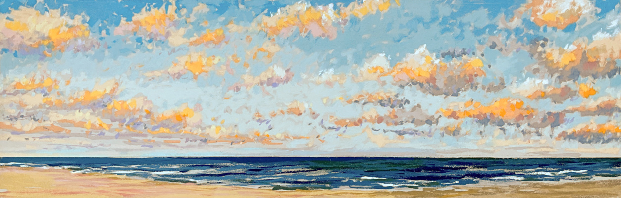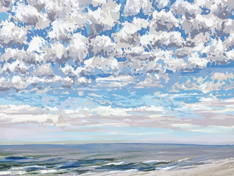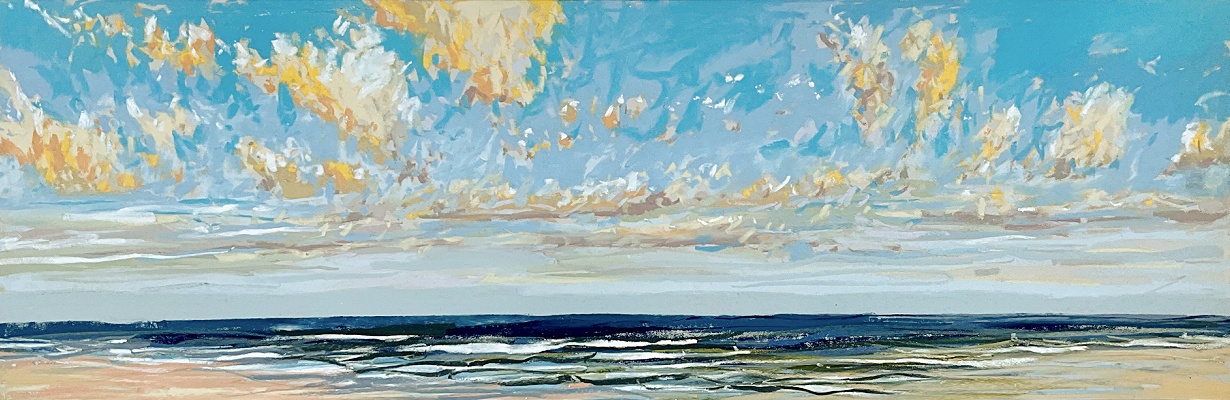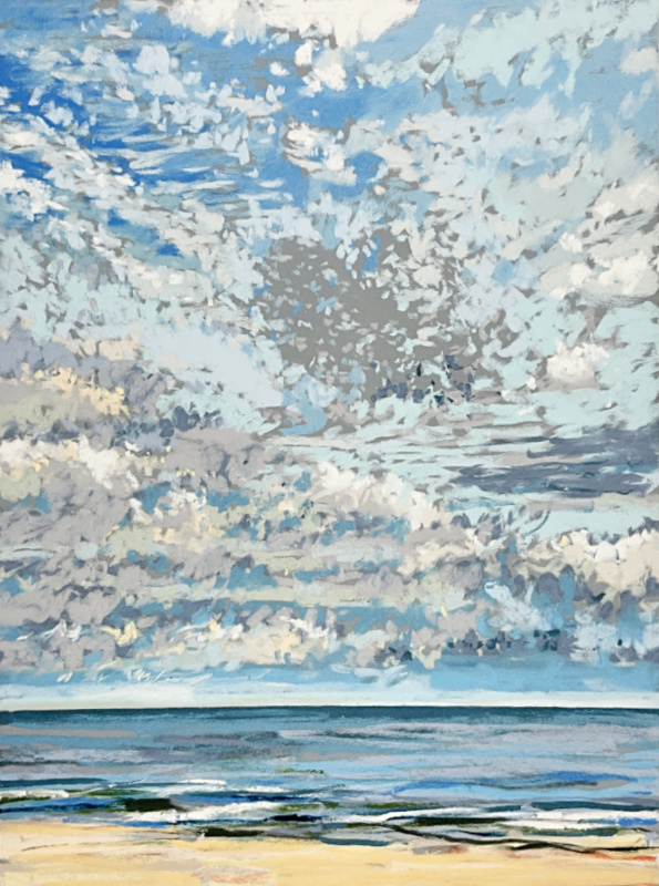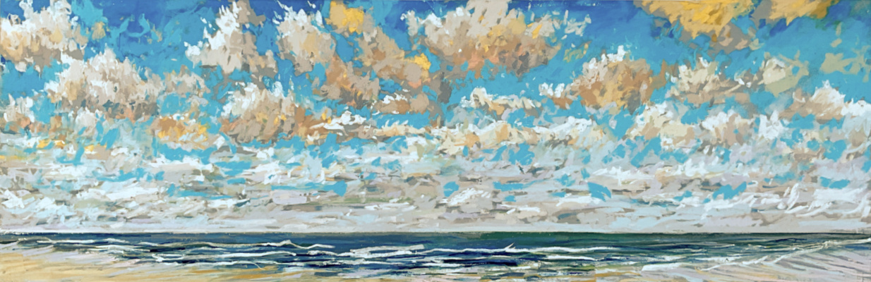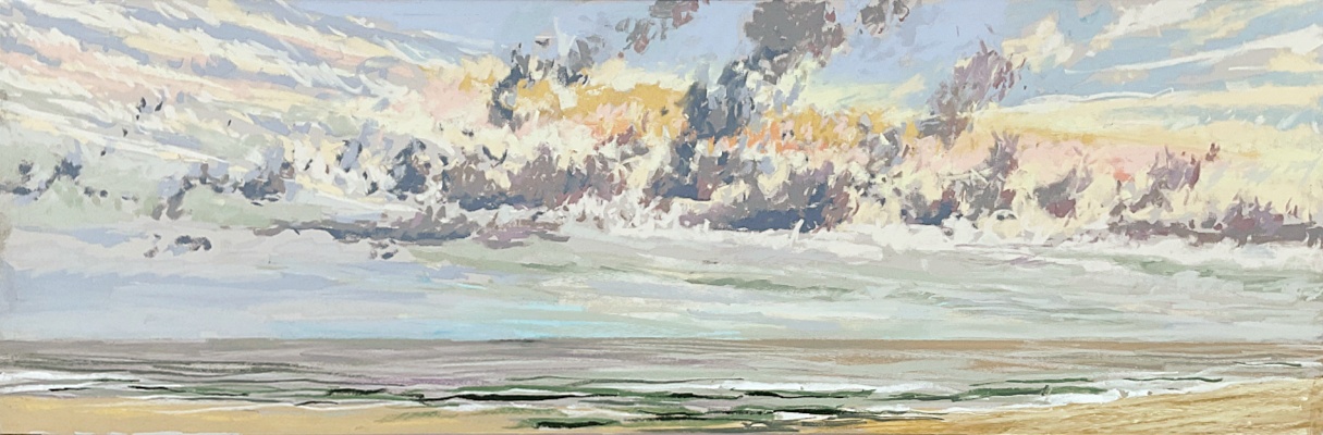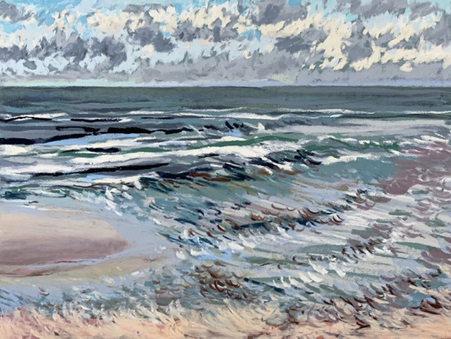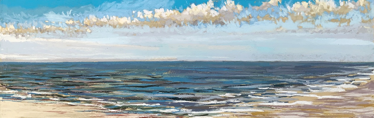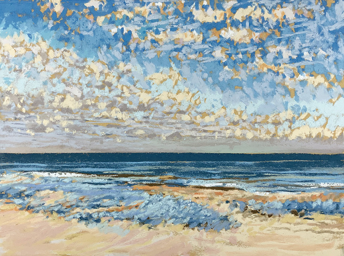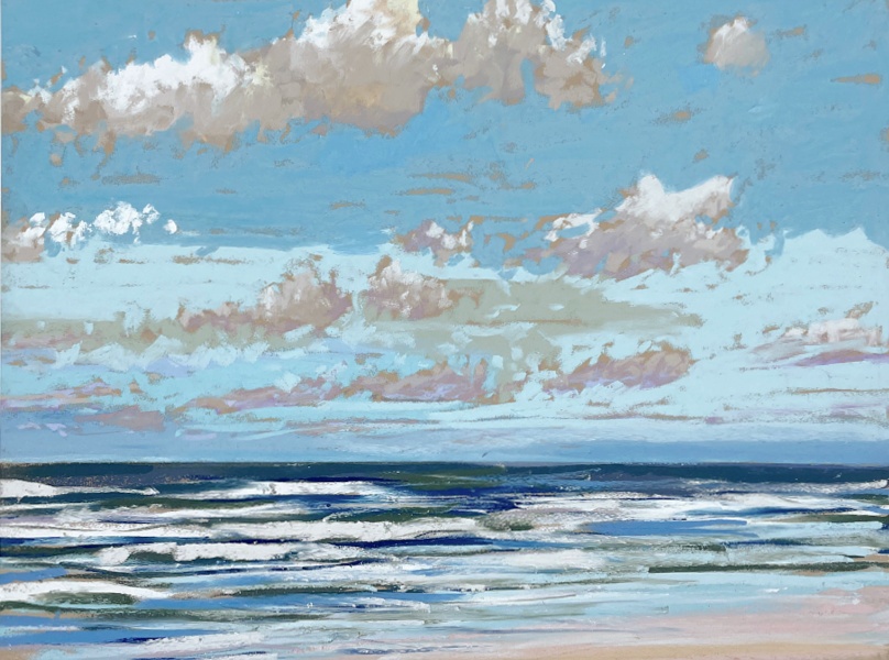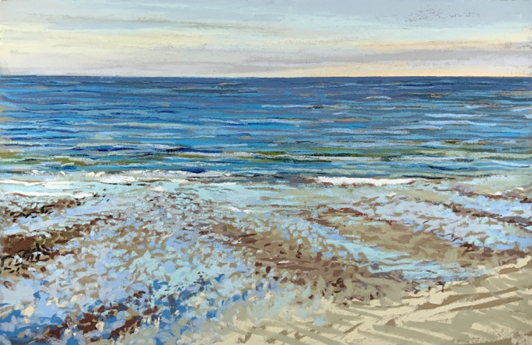 Sinds 2018 teken Van Meijel – zo vaak het kan – en plein air op het strand. Altijd met pastelkrijt en altijd op dezelfde plek: strandhuisje 3 bij de Texelse Beachclub.