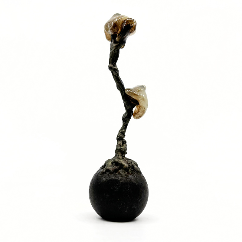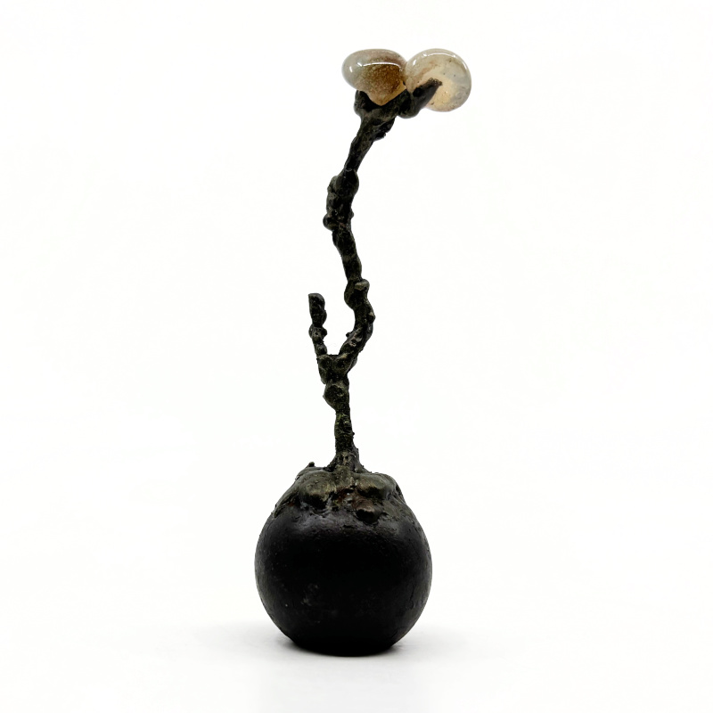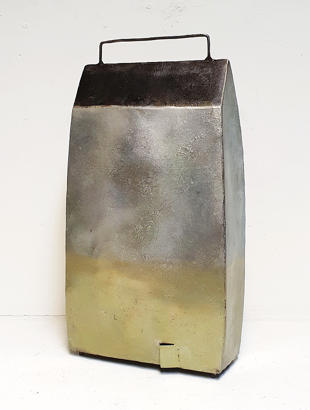 “Mijn beelden zijn gemaakt van staal, dat las of smeed ik, en werk het verder af met koperslag en roet. Het groene patina ontstaat door een bewerking met verschillende zuren.