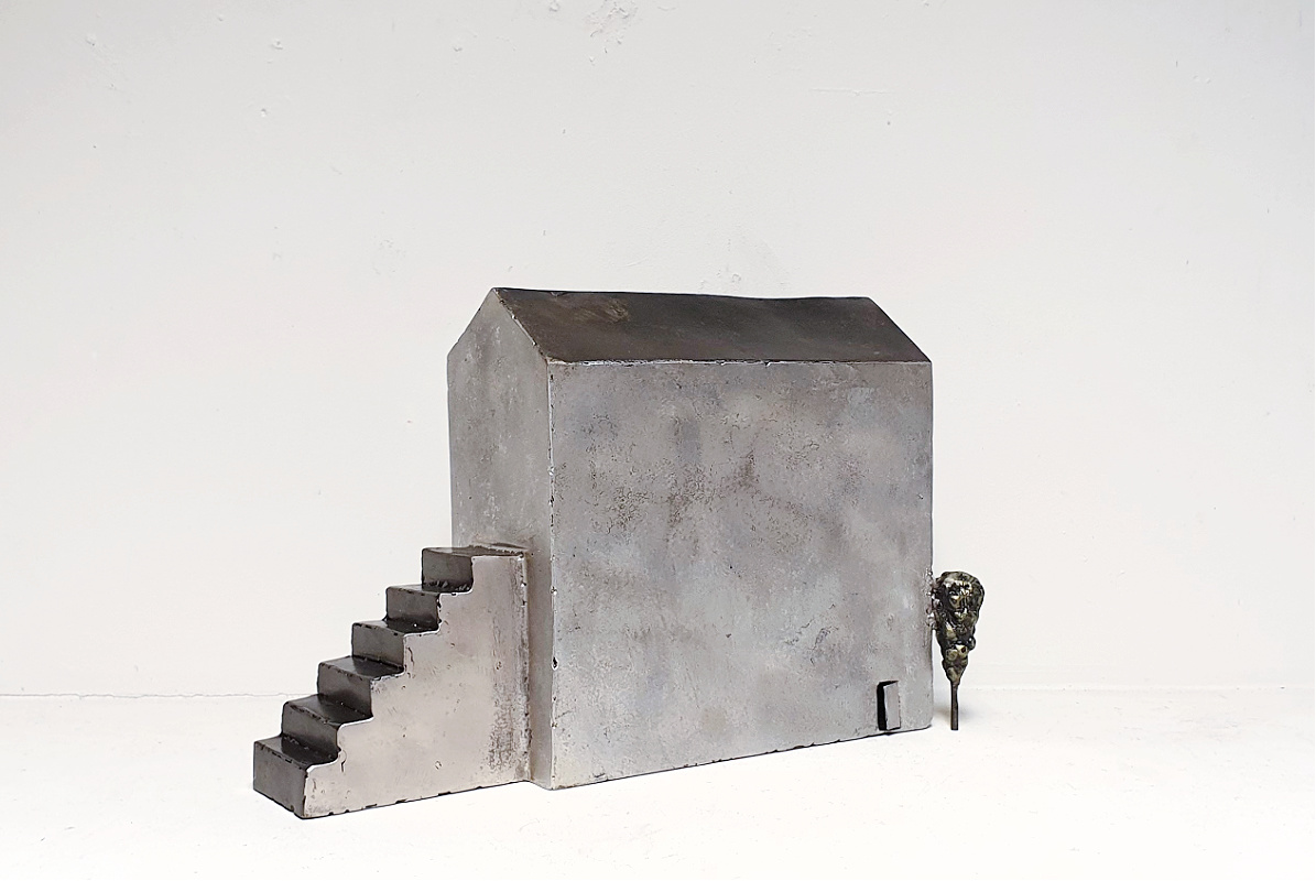 Ik ben op zoek naar monumentaliteit, kleine werken worden groot, nemen een ruimte in. Het harde lijnenspel en de duidelijke vorm van het staal werken daaraan mee.”