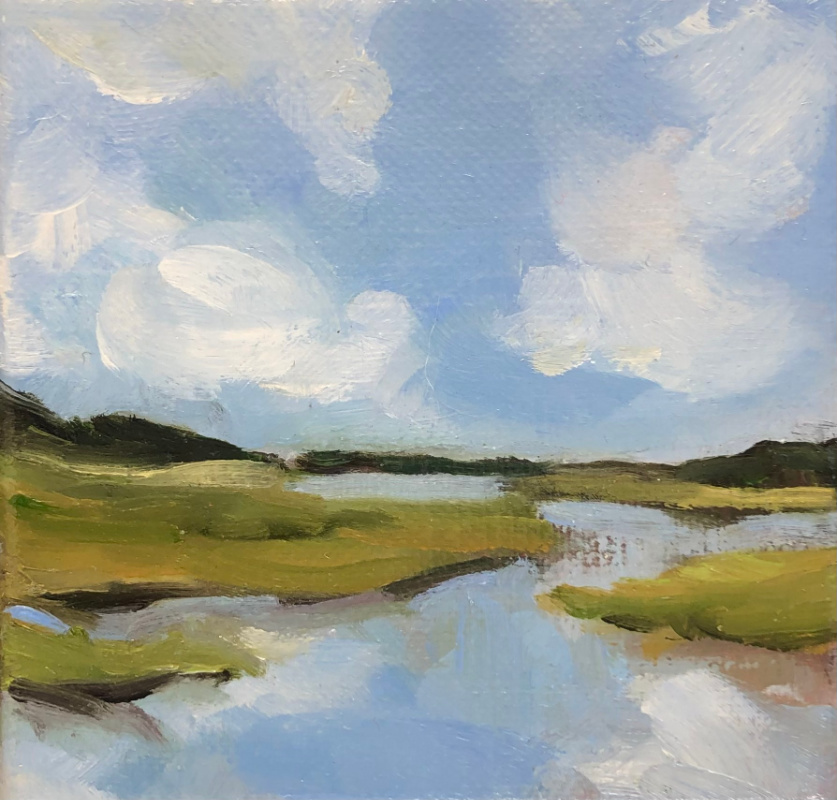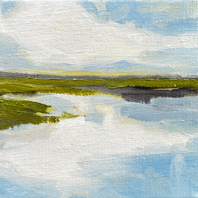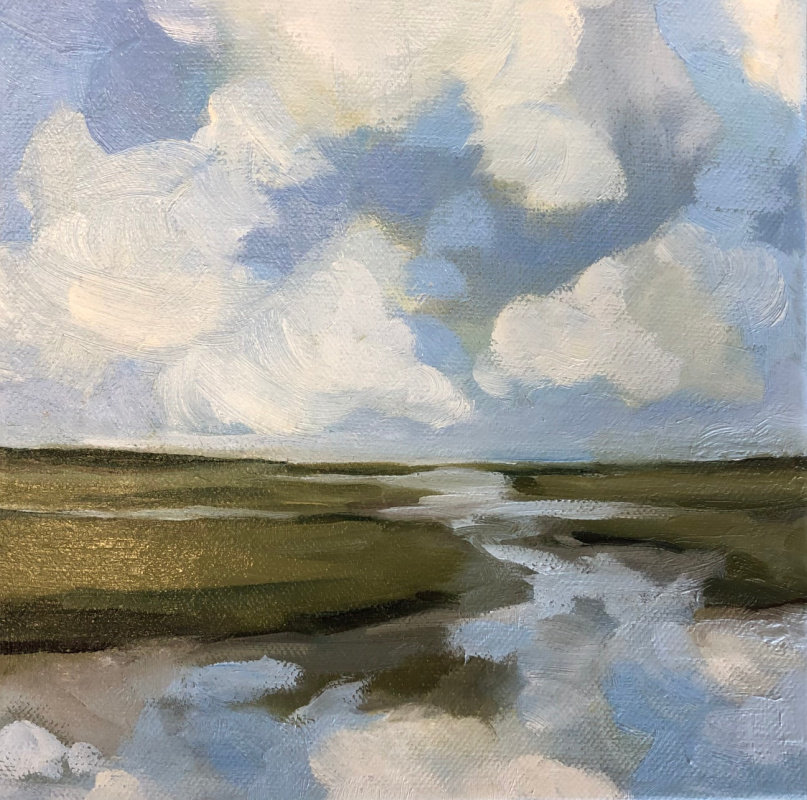 Mijn schilderijen zijn geen registratie van de werkelijkheid (behalve als ik ‘plein air’ werk), maar geven een impressie. Het zijn niet-bestaande landschappen, die je in Nederland overal kunt tegenkomen. Uitgangspunt daarbij is de horizon, waaromheen ik mijn eigen beeld creëer; ruimtelijk en simpel. Zoekend naar de sfeer van drassige landjes, spiegelend water en Hollandse luchten.